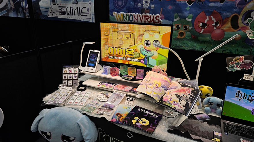 굿즈 판매 외에도, 게임을 즐길 수 있는 게임존과 시스템 위니언이 되어볼 수 있는 시스템 위니언 포토존 등이 마련되어 있습니다.
