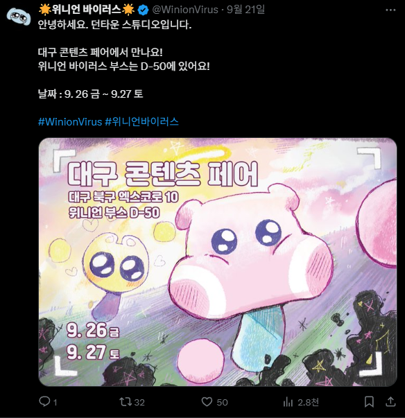 이번 대구 콘텐츠 페어에 오시는 분들을 위한 선물로,