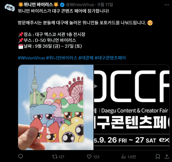 8월에 BIC를 다녀왔다면, 9월에는 대구 콘텐츠 페어에 참가했습니다.